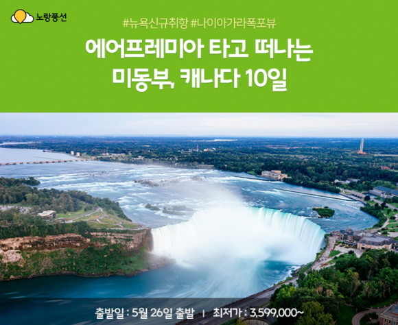 노랑풍선이 국내 유일 장거리 전문 하이브리드 항공사인 에어프레미아와 손잡고 '미동부 패키지 상품'을 출시했다. © 노랑풍선