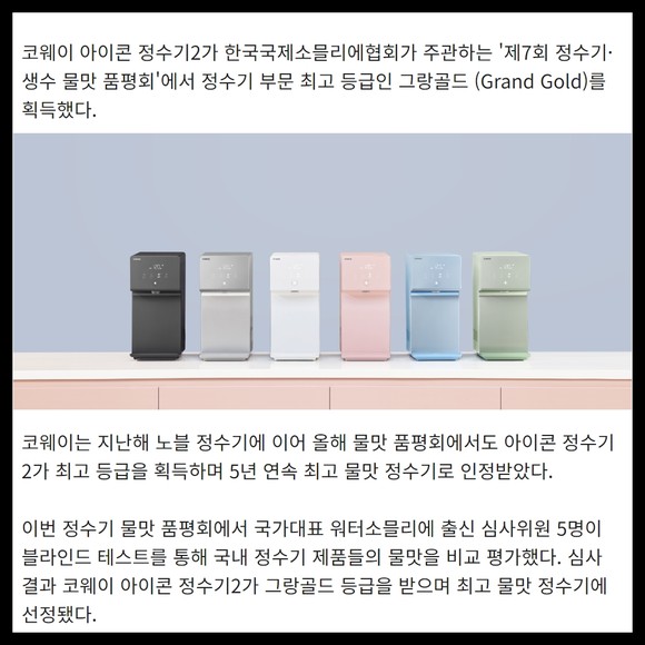 [카드] 코웨이 아이콘 정수기2 '정수기 물맛 품평회' 최고 등급 획득