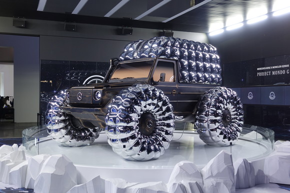 지난 2월 런던 패션위크 몽클레르 쇼에서 최초 공개 이후 아시아에서 첫 번째로 공개되는 프로젝트 몬도 G는 메르세데스-벤츠 G-클래스와 몽클레르만의 디자인 코드를 결합한 협업 쇼카다. 이번 서울모빌리티쇼의 프로젝트 몬도 G 전시공간 역시 차량이 최초공개됐던 당시의 몽클레르 쇼를 연상케 하는 공간으로 꾸며졌다.