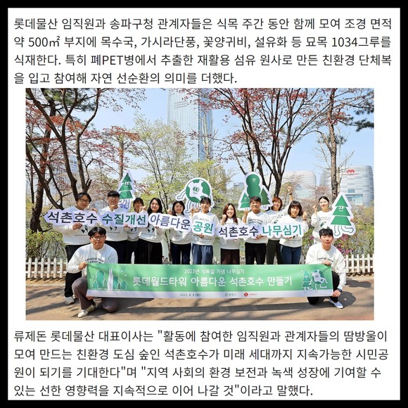 [카드] 롯데물산, 식목일 맞아 '아름다운 석촌호수 만들기' 행사 추진