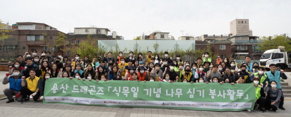 먼저 용산 소재 민관학 연합 봉사체 '용산 드래곤즈'가 지난 4일 식목일 기념 나무 식재 봉사활동을 진행했다.