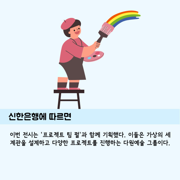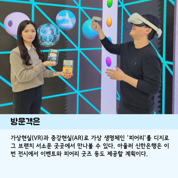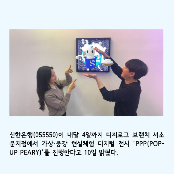 [프라임경제] 신한은행(055550)이 내달 4일까지 디지로그 브랜치 서소문지점에서 가상·증강 현실체험 디지털 전시 'PPP(POP-UP PEARY)'를 진행한다고 10일 밝혔다.