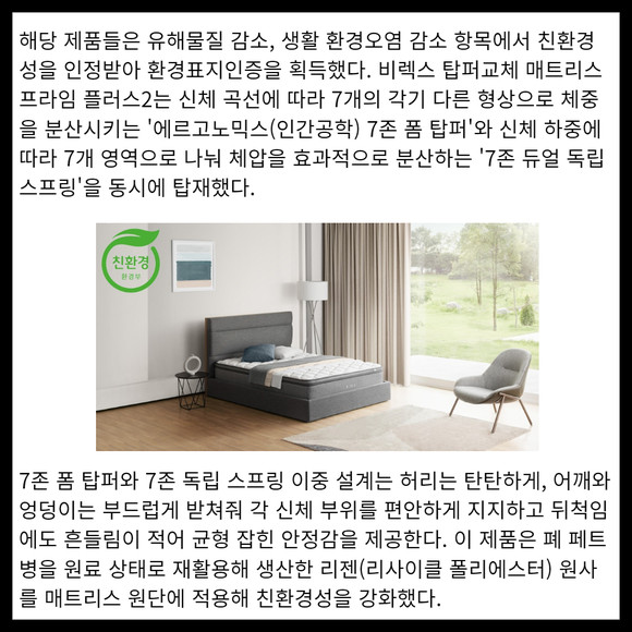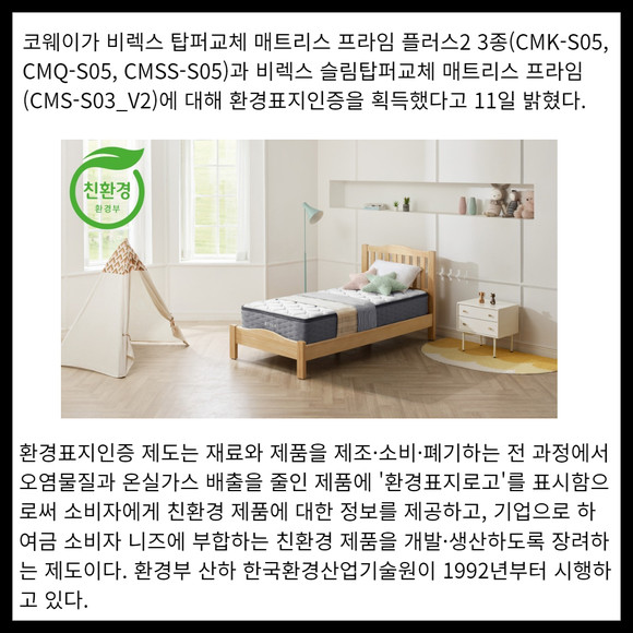 [카드] 코웨이 '비렉스 매트리스 4종' 환경표지인증 획득