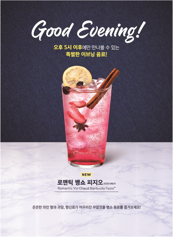 스타벅스 코리아가 영업시간 연장과 함께 4월14일부터 5월31일까지 오후 5시부터 즐길 수 있는 저녁 시간대 전용 음료인 '로맨틱 뱅쇼 피지오'를 전국 스타벅스 매장에서 선보인다. © 스타벅스
