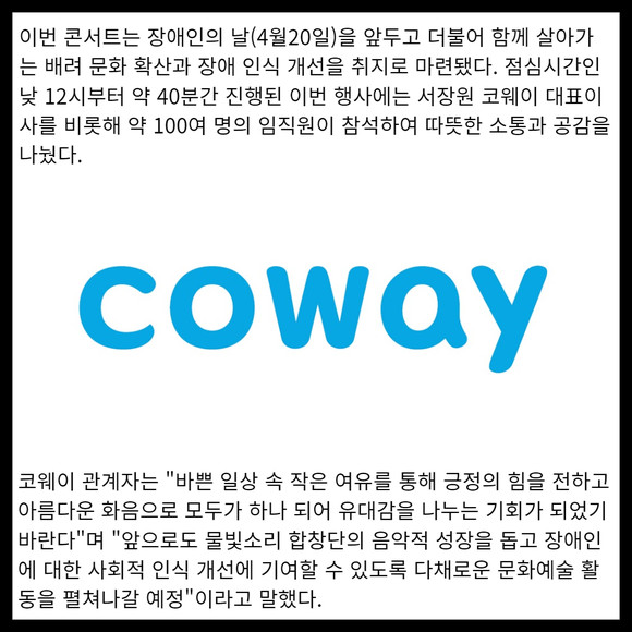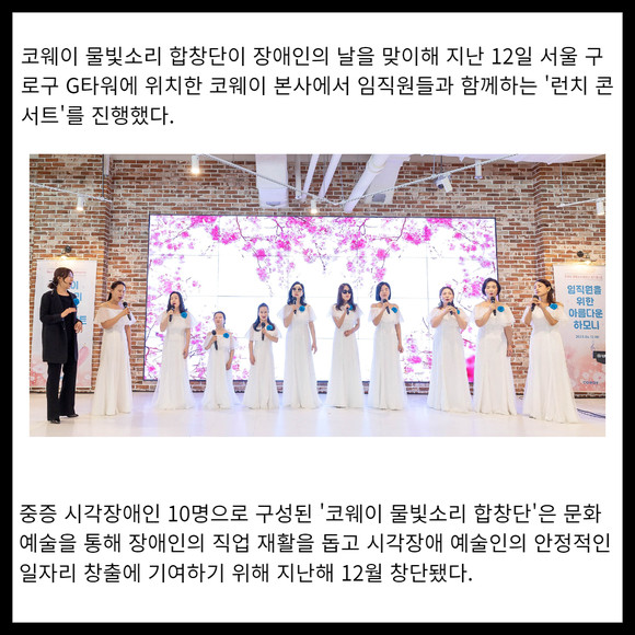 [카드] 코웨이 물빛소리 합창단, 장애인의 날 맞아 '런치 콘서트' 진행