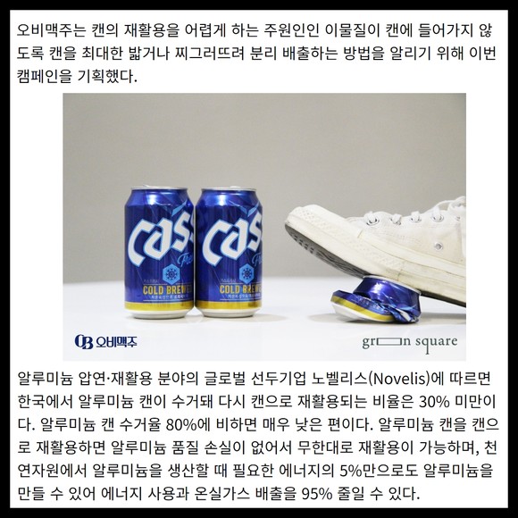 [카드] 오비맥주 "빈 캔, 밟아서 분리배출하세요"