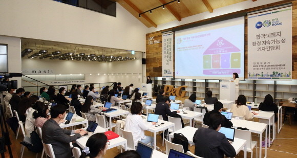 25일 오전, 서울 중구 커뮤니티하우스마실에서 '2023 한국P&G 환경 지속가능성 기자간담회'가 진행되고 있다. © 한국P&G