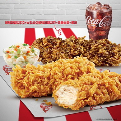 메뉴는 닭다리 통살로 만든 프리미엄 순살 '블랙라벨치킨(2조각)'과 KFC만의 비법 간장소스가 더해진 '뉴갓쏘이블랙라벨치킨', 양배추와 당근 등 신선한 야채를 버무린 샐러드 '코울슬로', 콜라 한 잔으로 구성했다.