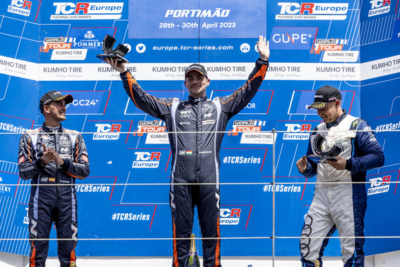 2023 TCR 월드 투어 포르투갈 대회에서 우승과 준우승을 차지하고 포디움에 올라선 모습. ⓒ 현대자동차