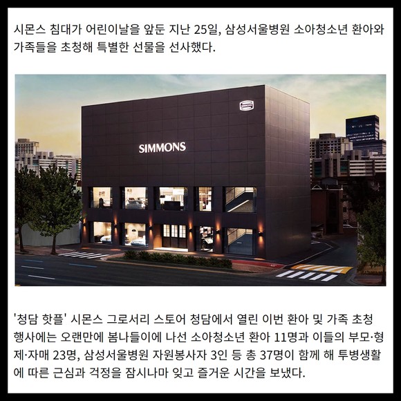 [카드] 시몬스 침대, 어린이날 맞아 소아청소년 환아 초청 행사