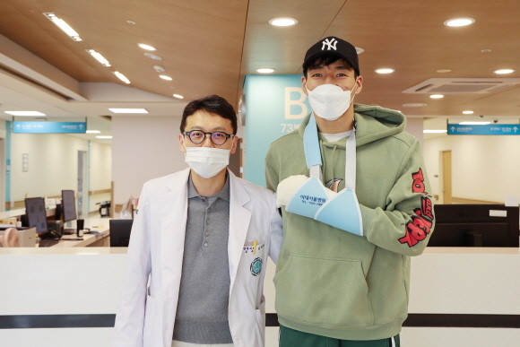 이대서울병원은 몽골 국가대표 농구선수이자 2023 FIBA 3대3 농구 아시안컵 금메달리스트인 덜군 엔크바트(Dulguun Enkhbat)가 손가락 골절로 수술을 받은 뒤 무사히 퇴원했다. © 이화의료원
