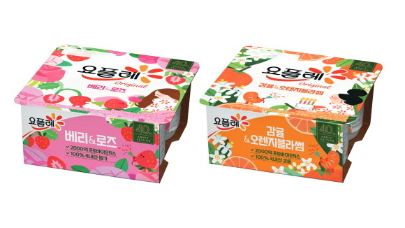 빙그레가 요플레 40주년 기념 에디션인 요플레 오리지널 '베리&로즈'와 '감귤&오렌지블라썸'을 출시한다. © 빙그레