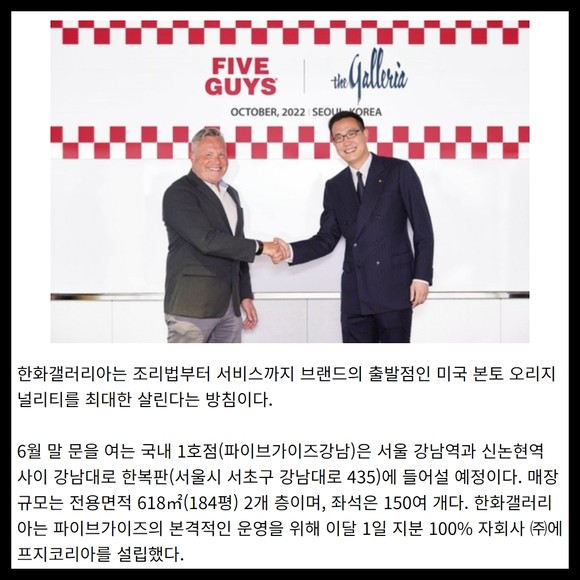 [프라임경제] 미국 유명 햄버거 브랜드 파이브가이즈가 다음 달 국내 론칭을 앞둔 가운데, 브랜드 유치를 주도한 김동선 한화갤러리아 전략본부장이 조리 과정을 포함한 서비스 전반을 실습했다. 한화갤러리아의 신사업 전략을 총괄하는 김 본부장이 직접 현장 서비스 업무에 참여한 건 이번이 처음이다.