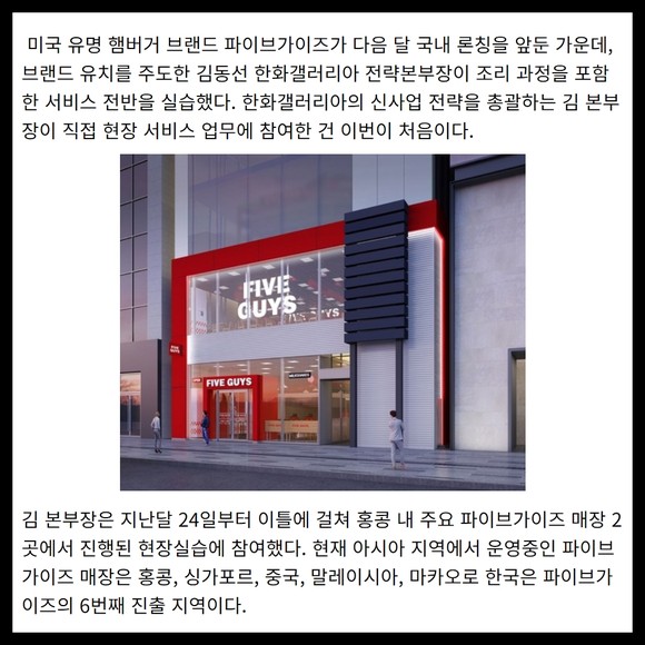 [카드] 김동선 전략본부장 파이브가이즈 홍콩 현장 실습 참여