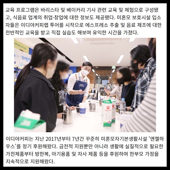 [카드] 이디야커피, 미혼모 대상 진로 체험 교육 진행
