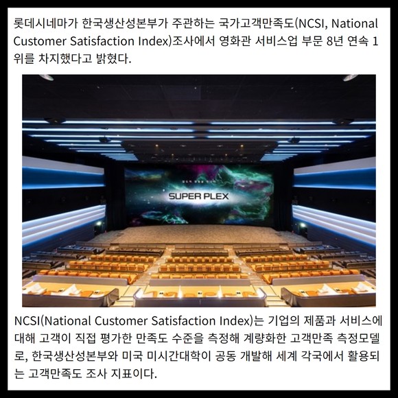 [카드] 롯데시네마, NCSI 8년 연속 1위