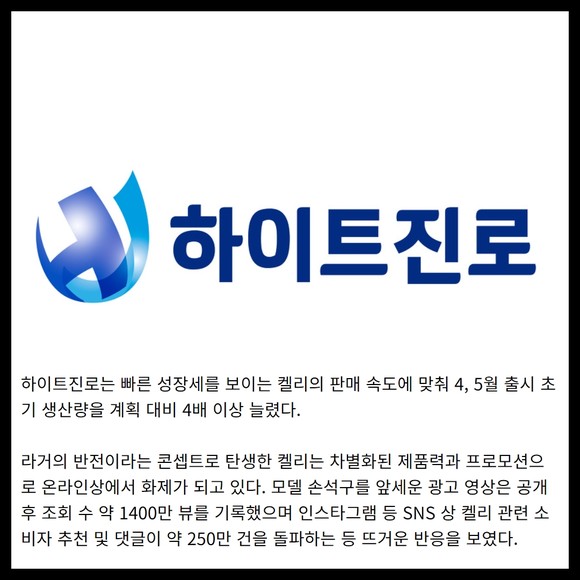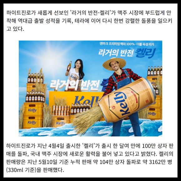 [카드] 하이트진로 '라거의 반전-켈리' 최단기간 100만 상자 판매 돌파