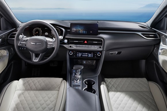 2023 G70·G70 슈팅 브레이크의 디자인은 제네시스 고유의 디자인 아이덴티티인 '역동적인 우아함'을 계승하고, 운전자 중심의 실내 디자인을 강화했다.