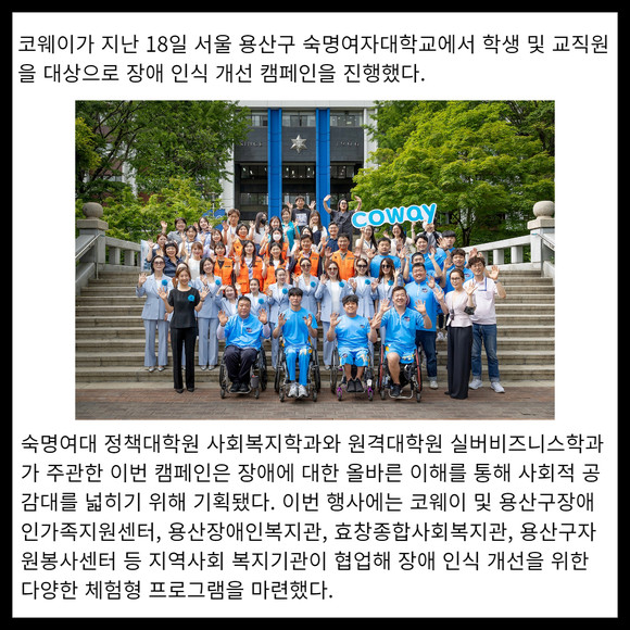 [카드] 코웨이, 숙명여대서 장애 인식 개선 캠페인 진행