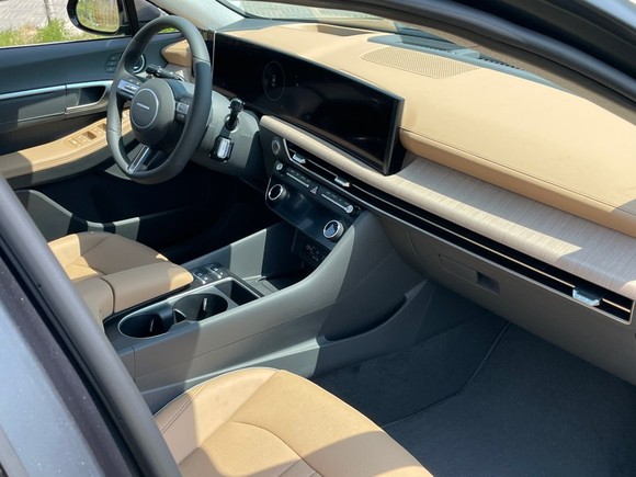 실내는 운전자 중심 구조를 계승하면서 섬세한 하이테크 디테일을 더해 프리미엄 세단의 감성을 구현했다. 현대차 최초로 적용된 파노라믹 커브드 디스플레이는 운전석과 센터페시아까지 디지털 클러스터와 내비게이션 화면이 하나로 쭉 이어져 깔끔하고 세련된 인상을 남긴다.