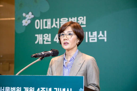 임수미 이대서울병원장은 기념사를 통해 "국내 최초 기준병실 3인실, 전 중환자실 1인실로 문을 열며 주목을 받았던 이대서울병원은 지난 4년 간 성장을 거듭해 왔다"라며 "그 결과, 서울 서남권 제1의 뇌혈관 진료실적, 필수의료 인력의 교수가 모두 병원에 상주하는 병원, 부동의 전국 1위의 응급의료센터가 있는 병원이라는 명성을 얻었다"며 지난 4년을 돌아봤다.