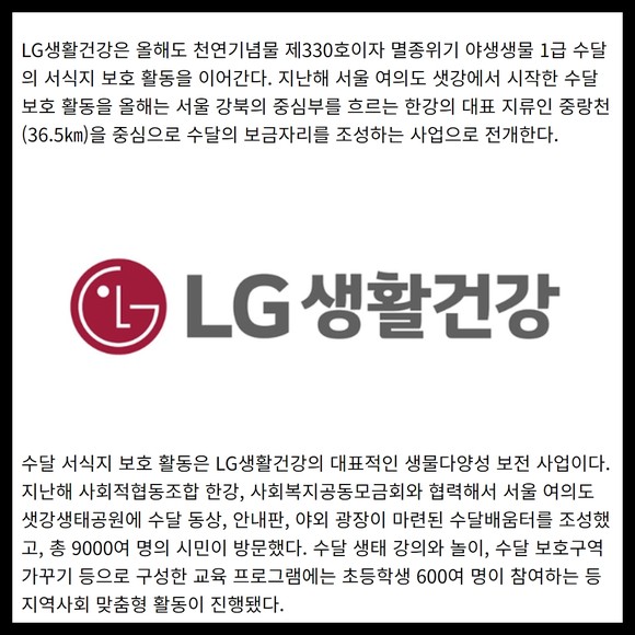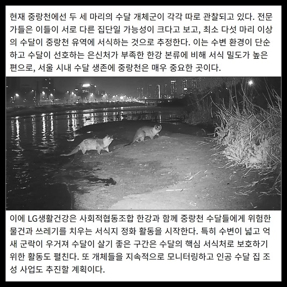 [카드] LG생활건강, 서울 중랑천에 '수달 보금자리' 조성