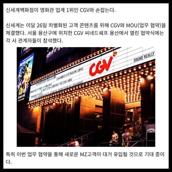 [카드] 신세계백화점, CGV와 MZ고객 잡는다