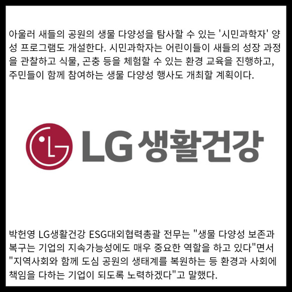 [카드] LG생활건강 '새들의 공원' 조성