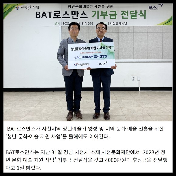 [카드] BAT로스만스, 사천지역 청년 예술인 후원 앞장