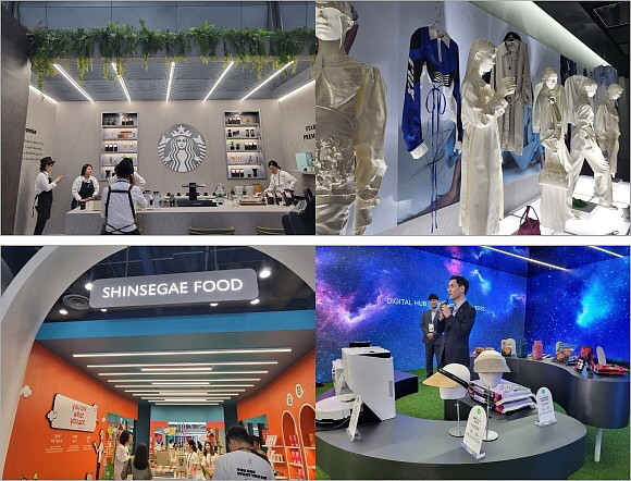 신세계그룹이 8일 오전 서울 강남구 코엑스에서 신세계 유니버스 페스티벌을 개최했다. (왼쪽부터 시계방향) 스타벅스, W컨셉, G마켓, 신세계푸드 부스. = 추민선 기자
