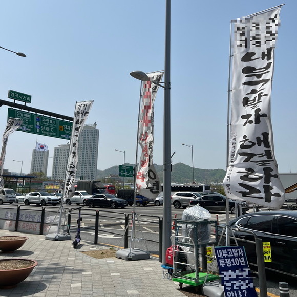 하지만 A 씨는 법원에서 지적한 일부 표현을 고치고 장송곡을 운동가요로 바꾸는 등 이후에도 기업 직원과 인근 시민을 볼모로 한 막무가내 시위를 이어가고 있다.