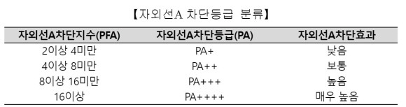 자외선차단제 구매 시 자외선차단지수(SPF)와 자외선A 차단등급(PA)을 확인하고 목적에 맞게 사용하고자 하는 제품을 골라야 한다.