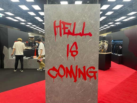 '지옥이 온다(Hell is coming)'라는 포토존도 마련됐다. = 김소미 기자