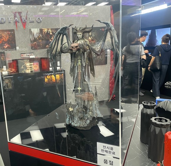 성인 상체 크기의 게임 속 릴리트가 투명 아크릴 상자에서 방문객들의 호주머니를 노리는 시선으로 바라봤다. 이미 어떤 사람이 이런 시선에 매혹됐는지 아크릴판 아래에는 '판매완료' 스티커가 붙었다.
