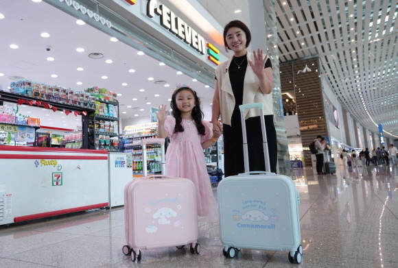 세븐일레븐에서만 단독으로 출시하는 '시나모롤 기내용 캐리어' 2종(핑크, 블루)은 오는 28일부터 전국 세븐일레븐 점포에서 2만5000개 한정수량 판매할 예정이다.