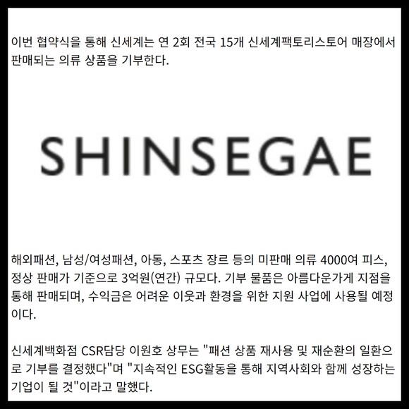 [카드] 신세계팩토리스토어, 아름다운가게에 패션상품 기부