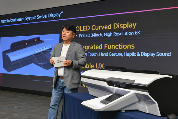 한영훈 EC랩장(상무)이 스위블 디스플레이를 직접 소개하고 있는 모습. ⓒ 현대모비스