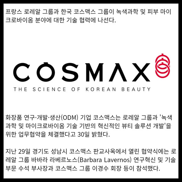 [카드] 로레알 그룹-코스맥스, 뷰티 솔루션 개발 업무협약