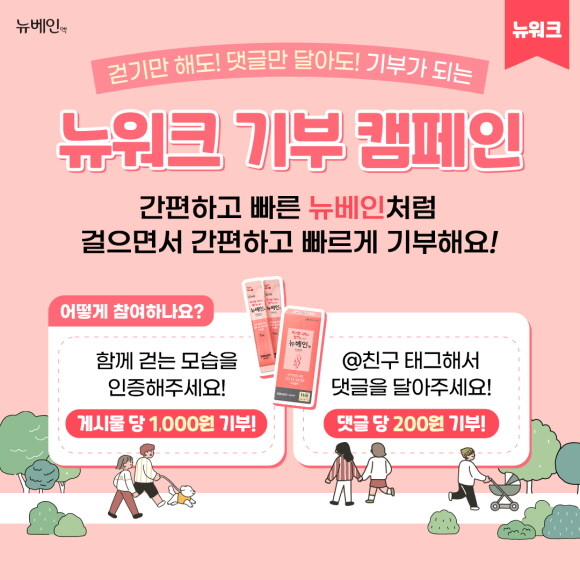 대원제약의 짜 먹는 정맥순환개선제 '뉴베인액'이 참여형 기부 캠페인 '뉴워크'를 진행한다. © 대원제약