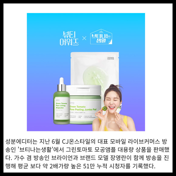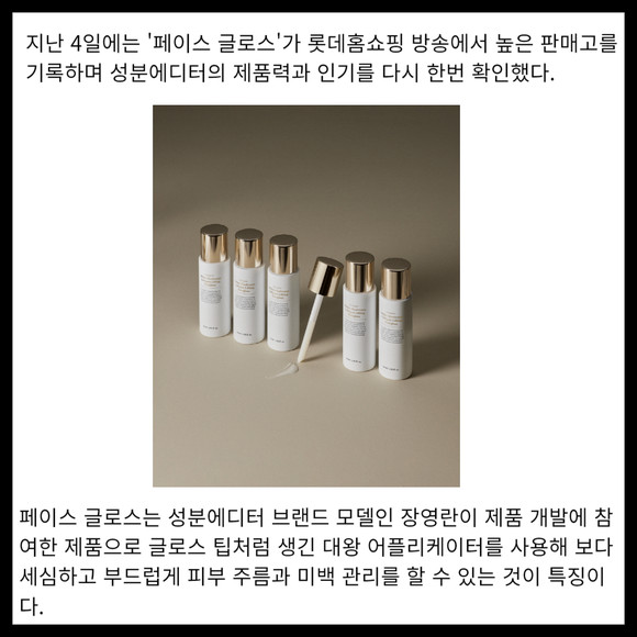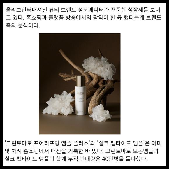 [프라임경제] 올리브인터내셔널 뷰티 브랜드 성분에디터가 꾸준한 성장세를 보이고 있다. 홈쇼핑과 플랫폼 방송에서의 활약이 한 몫 했다는게 브랜드 측의 분석이다.