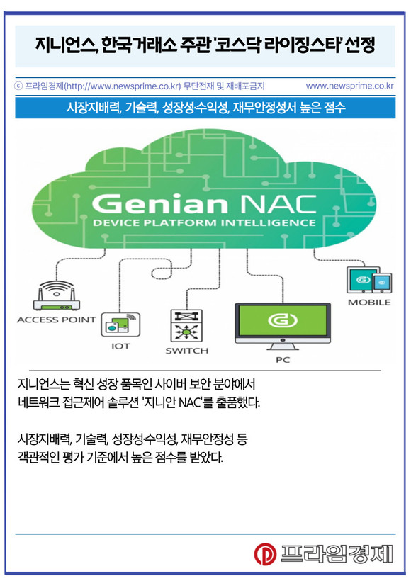 지니언스는 혁신 성장 품목인 사이버 보안 분야에서 네트워크 접근제어 솔루션 '지니안 NAC'를 출품했다. 시장지배력, 기술력, 성장성·수익성, 재무안정성 등 객관적인 평가 기준에서 높은 점수를 받았다.