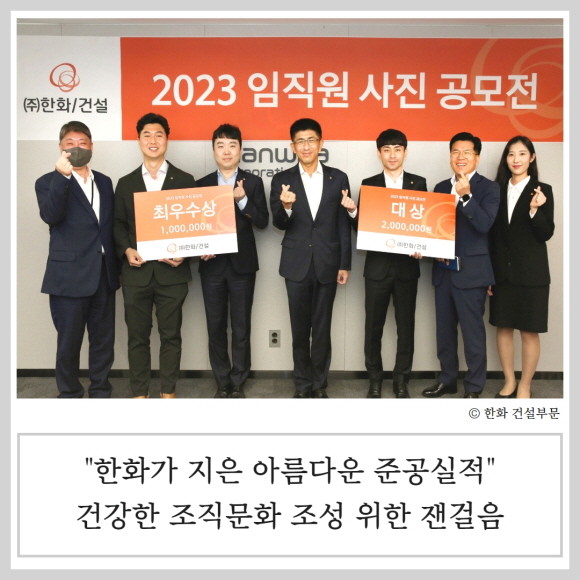 한화 건설부문이 '즐거운 직장만들기' 프로그램 일환으로, 임직원 사진 공모전을 실시하고 이에 대한 시상식을 지난 7일 개최했다.
