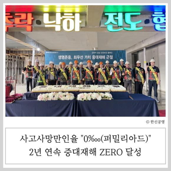 한신공영(004960)이 2년 연속 중대재해 'ZERO'를 달성했다.