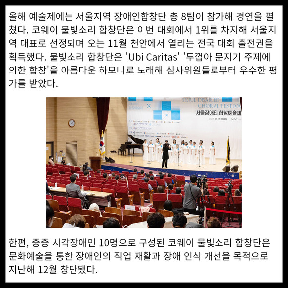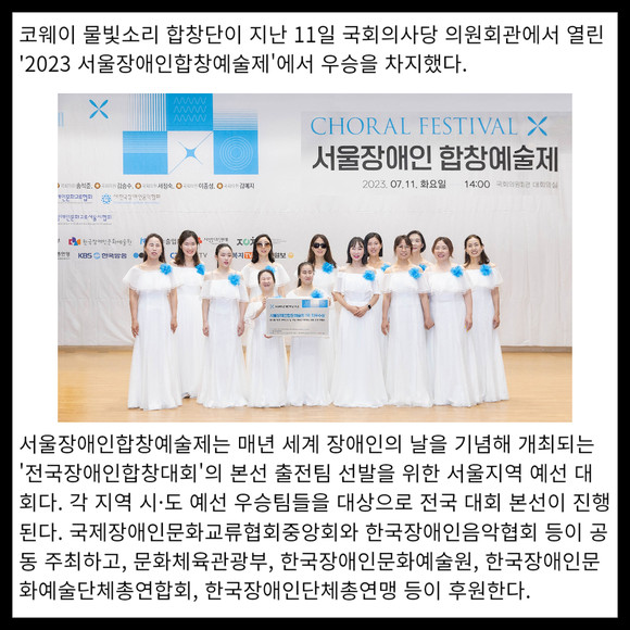 [카드] 코웨이 물빛소리 합창단 '2023 서울장애인합창예술제' 1위