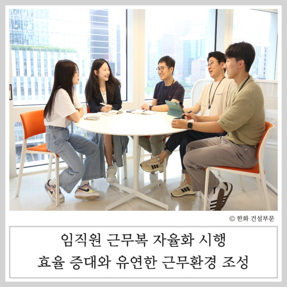 한화 건설부문이 이달 초부터 조직문화 개선 일환으로, 전 임직원 대상 근무복 자율화를 시행한다.