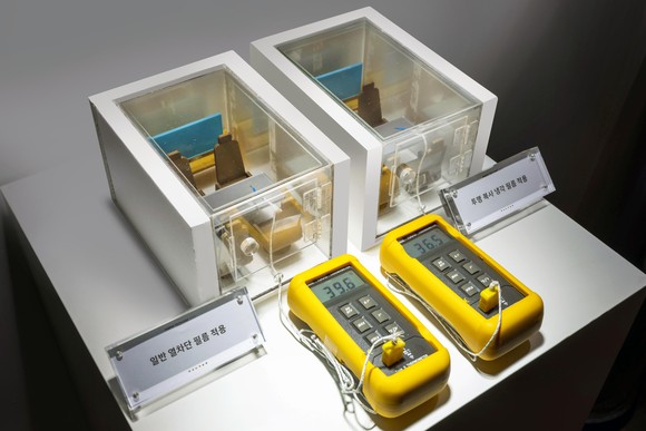 다층 필름 구조로 이뤄진 이 소재는 외부로부터 들어오는 △자외선 △가시광선 △근적외선과 같은 열을 차단하고, 효과적인 복사 냉각을 위해 원적외선대의 열을 방사한다. 기존 틴팅 필름이 외부의 열 차단만 가능한 반면, 투명 복사 냉각 필름은 열이 외부로 방출되도록 하는 기능이 추가돼 탄소 저감 효과까지 얻을 수 있다.