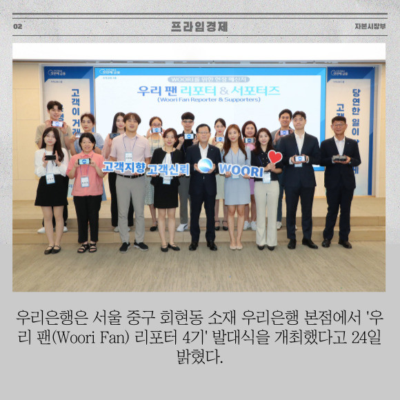 [프라임경제] 우리은행은 서울 중구 회현동 소재 우리은행 본점에서 '우리 팬(Woori Fan) 리포터 4기' 발대식을 개최했다고 24일 밝혔다.