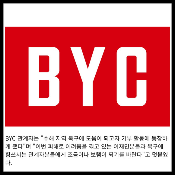[카드] BYC, 수해지역 복구 위한 물품 지원