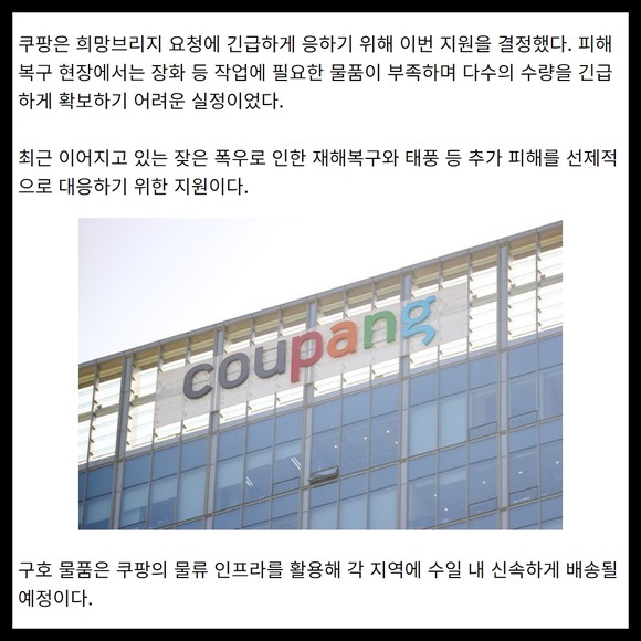 [카드] 쿠팡, 희망브리지 전국재해구호협회에 장화 800 켤레 지원