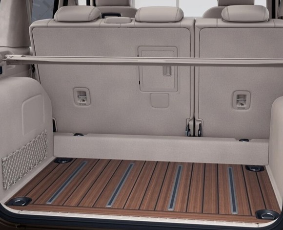 러기지 컴파트먼트 플로어는 짙은 오크 색상의 트림 인서트와 밝은 체리 우드 색상이 어우러지며 브라운 톤의 인테리어와 조화를 이룬다. 또 고무 인서트가 장착된 알루미늄 레일과 짐을 묶어둘 수 있는 고정 장치는 짐이 운행 중에도 흔들리지 않게 도와준다.